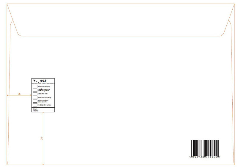 Doručenková obálka C4 je vyrobená z bieleho bezdrevného 80g papiera s lichobežníkovou klopou.