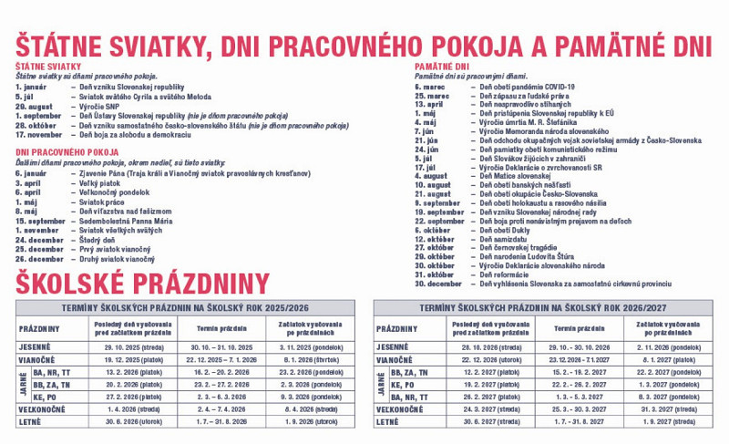 Obsahuje dane, fond pracovného času, sviatky v EU, východy a západy slnka, fázy mesiaca.
