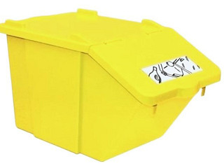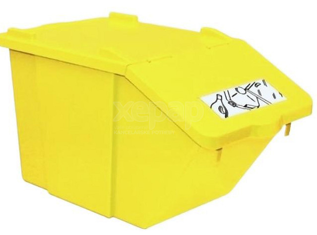 Plastová nádoba vybavená vekom je vyrobená z polypropylénu (PP). Jej hladký povrch uľahčuje čistenie. Nádoby sú stohovateľné a vybavené štítkom s označením daného druhu odpadu. Farebné prevedenie uľahčuje orientáciu pri zbere triedeného odpadu. Nádoba je určená na zber triedeného odpadu alebo ako bežna nádoba na uloženie vecí. Hmotnosť 1,79kg. Rozmery š x h x v (mm): 510 x 315 x 300mm.