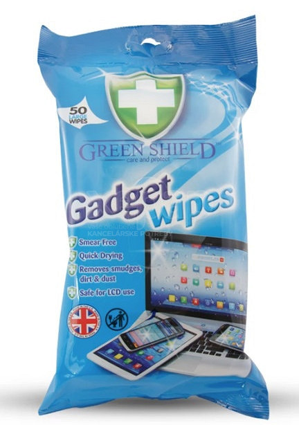 GREEN SHIELD čistiace utierky na LCD monitory, laptopy, telefóny. Bezpečne odstraňujú odtlačky prstov, prach, nečistoty. Obsah balenia 50 ks.