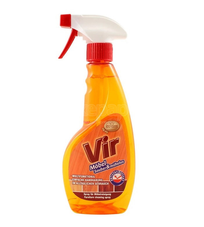 Čistaici prostriedok VIR Expert bol vyvinutý na zabezpečenie odbornej starostlivosti o nábytok a drevené povrchy. Ľahko čistí všetky druhy drevených povrchov- dosky, podlahy, dvere, soklové lišty, atď. Antistatický účinok zabraňuje rýchlemu homadeniu prachu na povrchoch.