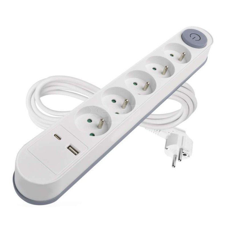 ďalšie funkcie: nie; detské clonky: áno; dĺžka: 3 m; farba: biela, šedá; jazyky aplikácie: –; kompatibilita: –; krytie: IP20; materiál zásuvky a vidlice: PC (polykarbonát); max. záťaž: 3 680 W; napätie: 250 V~; notifikácie do mobilnej aplikácie: nie; ovládanie hlasovými asistentmi: nie; počet zásuviek: 5× 2P + PE; podporované OS: –; predajný obal: 1 ks, krabica; prenosová frekvencia: –; prierez vodiča: 1,5 mm²; protokol: –; prúd: 16 A max.; typ izolácie: PVC; USB výstup: 1× USB-A, 1× USB-C, total: 3,4 A – 17 W (fast charging); vodič: H05VV-F3G; vypínač: áno
