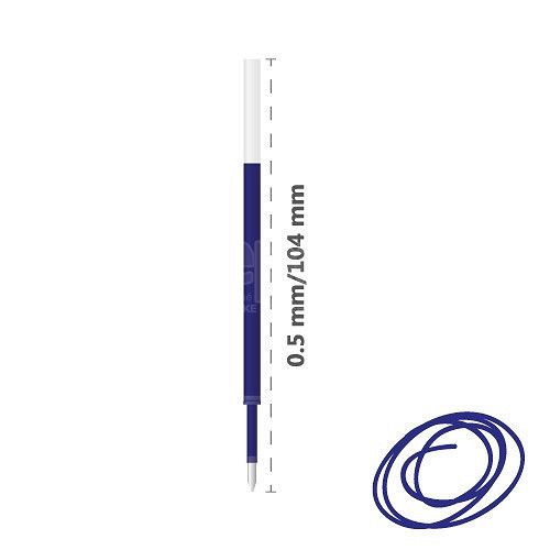 Modrá náplň do gélového pera, priemer guľôčky 0,5 mm, farba modrá. Dĺžka: 104 mm.