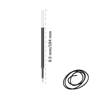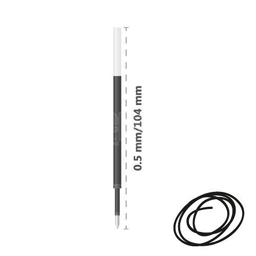 Čierna náplň do gélového pera, priemer guľôčky 0,5 mm, farba čierna. Dĺžka: 104 mm.