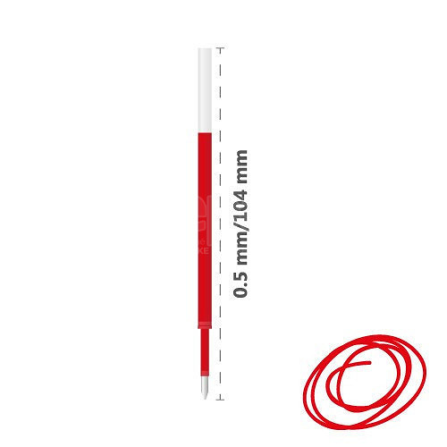 Červená náplň do gélového pera, priemer guľôčky 0,5 mm, farba červená. Dĺžka: 104 mm.