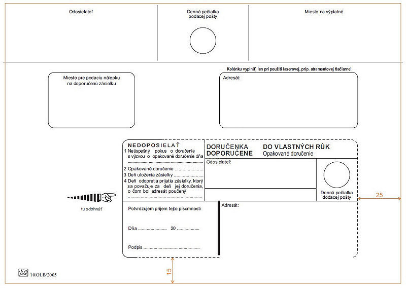 Obálka C5 do vlastných rúk s opakovaným doručením, samoprepis.