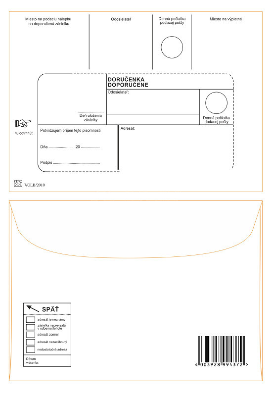 • vhodné na automatické spracovanie na poštových triediacich linkách