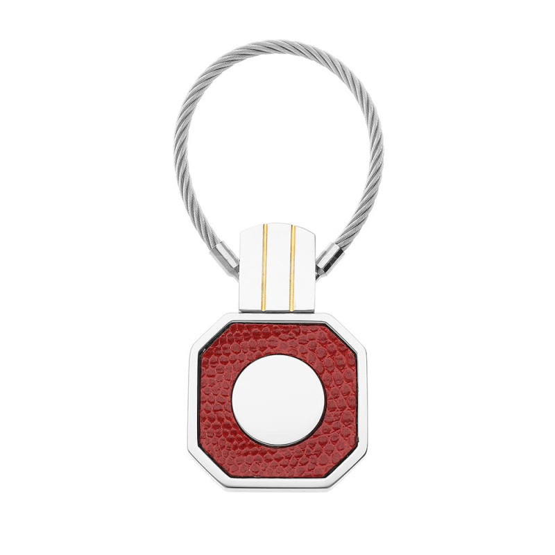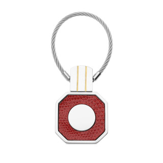 Kovová kľúčenka s pútkom v elegantnom prevedení, vybavená spoľahlivým zaisťovacím mechanizmom – na odistenie stačí zdvihnúť a jemne pootočiť hornú časť kľúčenky.