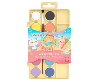 Vodové farby Jovi Kawai so štetcom, 12 farieb.
