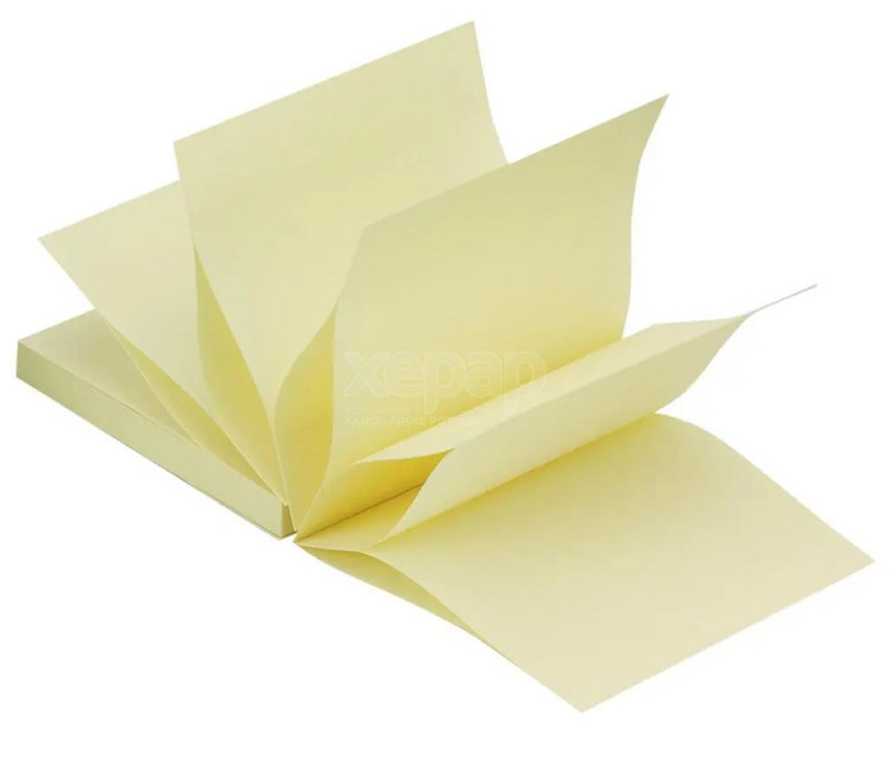 Bločky ZZ žlté, naskladané na seba, 76x76mm, 100lístkov.