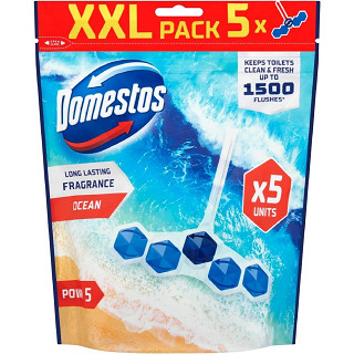 WC blok Domestos Ocean zaistí hygienickú čistotu, dlhotrvajúcu a sviežu vôňu, ochranu pred usadzovaním vodného kameňa, hustú penu a lesk, vďaka čomu budete mať pocit, že sviežosť vo vašej toalete sa nekončí. Navyše, špeciálna formula garantuje až o 60% intenzívnejšiu a dlhotrvajúcu vôňu v porovnaní s predchádzajúcimi verziami produktu. Okrem toho, že bloky  chránia pred baktériami a zabezpečujú dokonalú čistotu, starajú sa aj o záchodovú misu a účinne zabraňujú usadzovaniu vodného kameňa. V tomto všetkom pomáha výnimočná formula peny, ktorá sa aktivuje po každom spláchnutí, zabezpečujúc lesklú čistotu a závan oceánskej sviežosti.