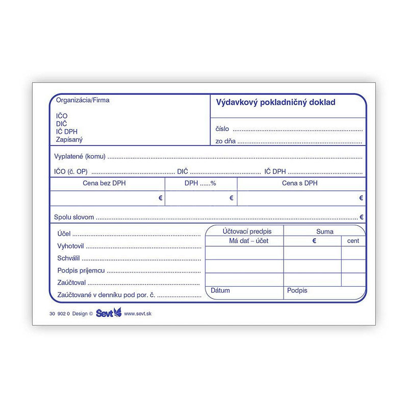 Výdavkový poklad. doklad s DPH, ŠEVT, A6, 100 listov 309020 Kód tovaru: 150.3090.20