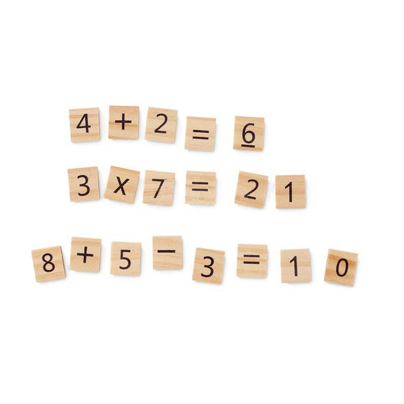 Drevená vzdelávacia početná hra v bavlnenom sáčku. Obsahuje 32 dielikov.
