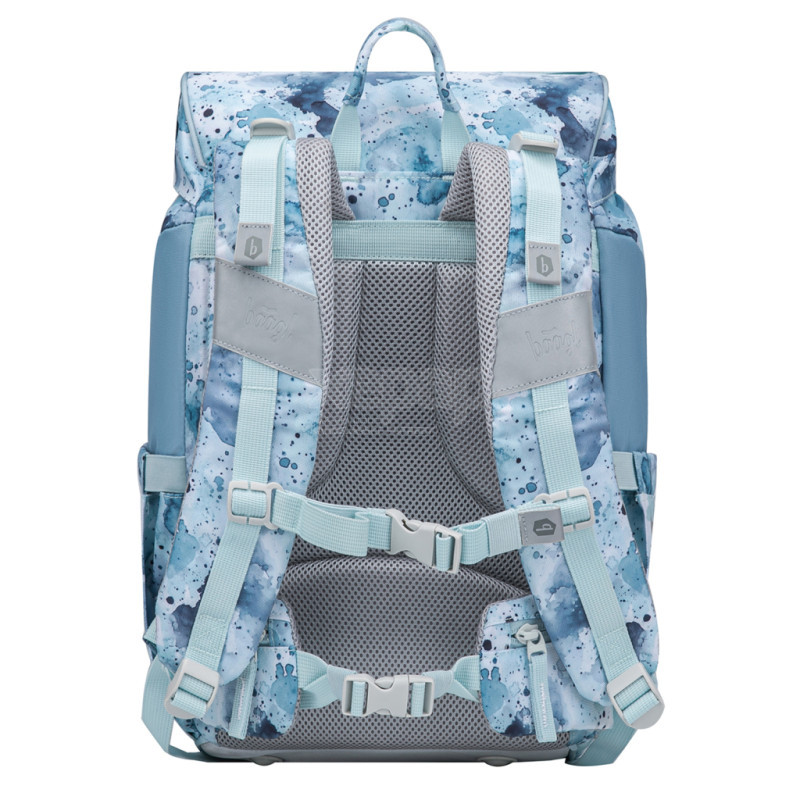 • Jednokomorové vnútorné usporiadanie s vreckom a gumičkoupre uchytenie školských dosiek na strane chrbáta slúži na jednoduchú organizáciu všetkých školských pomôcok.