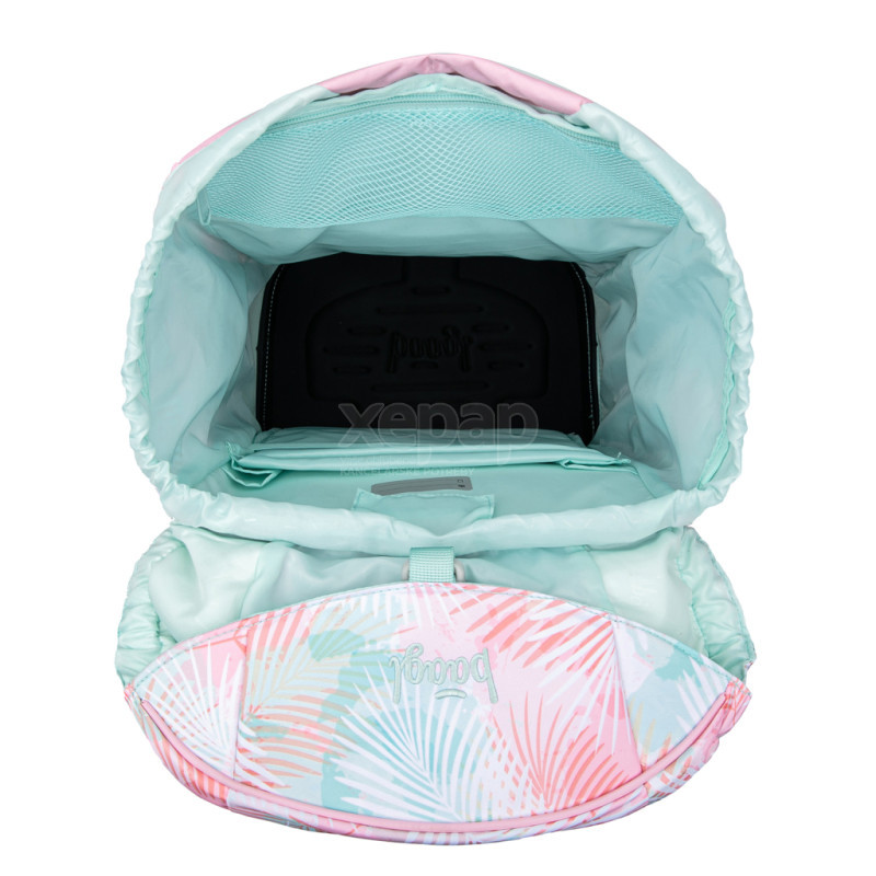 • Vnútro ponúka hlavný priestor s prehľadným organizérom a ľahkými plastovými vložkami na ochranu zošitov, ktoré kopírujú tvar zadného vrecka.