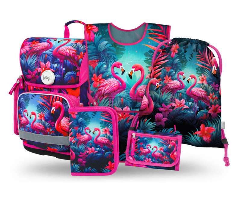 BAAGL SADA 5 Ergo Plameniaky: aktovka, peračník, vrecko, zástera, peňaženka Kód tovaru: PR.A-36513