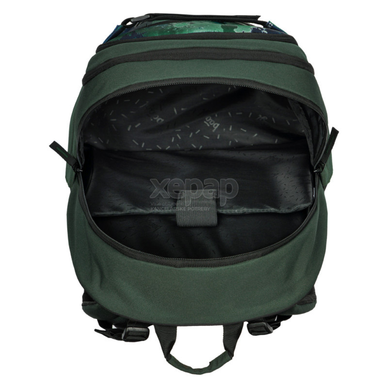 ŠKOLSKÝ BATOH SKATE FOREST • Populárny model Skate, s hmotnosťou nepresahujúcou 900 g a popruhami na uchytenie skateboardu, je ideálny pre žiakov už od tretej triedy ZŠ.
