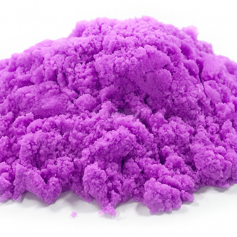 Fialový kinetický piesok je mäkký a príjemný na dotyk.
